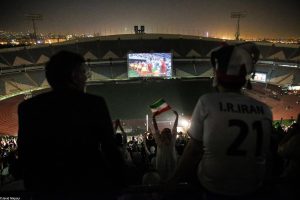 Iranian football fans are seen at Azadi Stadium during the live broadcast of the 2018 FIFA World Cup match between IRAN and Portugal in Tehran, Iran on June 25, 2018. Iranian woman were allowed to enter at Tehran stadium to watch a live broadcast of two matches of the 2018 FIFA World Cup between Iran v Spain and Portugal.